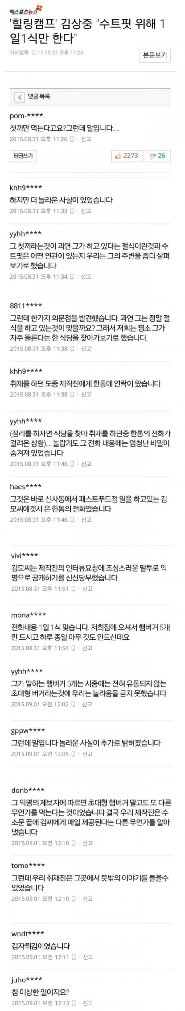 김상중이 1일1식 한다는 기사에 달린 댓글