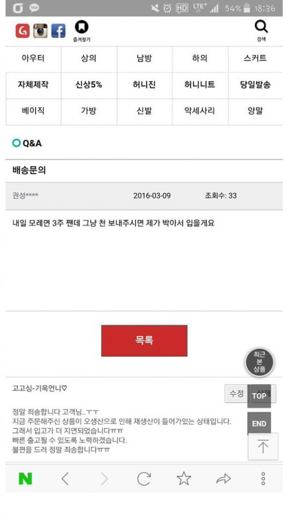 쇼핑몰 배송지연에 대한 고객문의