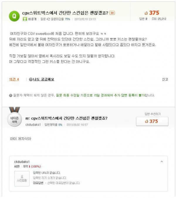 CGV스위트 박스에서 간단한 스킨쉽은 괜찮겠죠?
