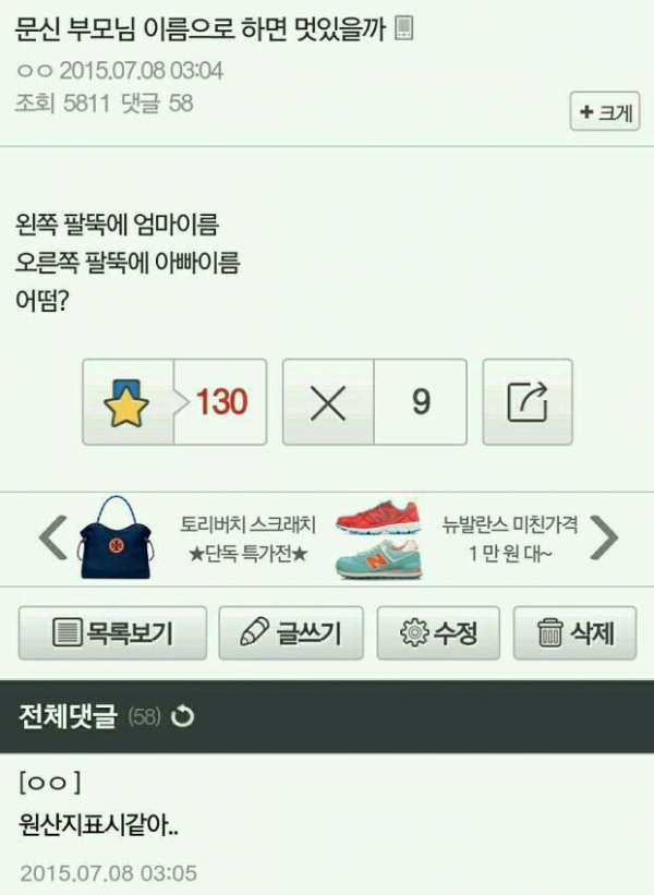 부모님 이름으로 몸에 문신을 한다면 멋있을까?