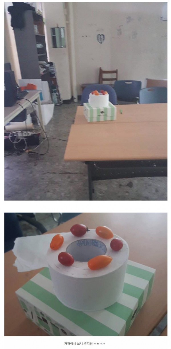 학교에서 책상에 웬 케익이 있길래 설렜는데