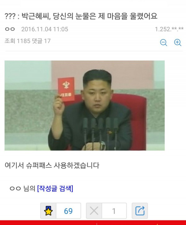 ??? : 박근혜씨, 당신의 눈물은 제 마음을 울렸어요