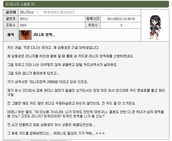 리니지 정액..